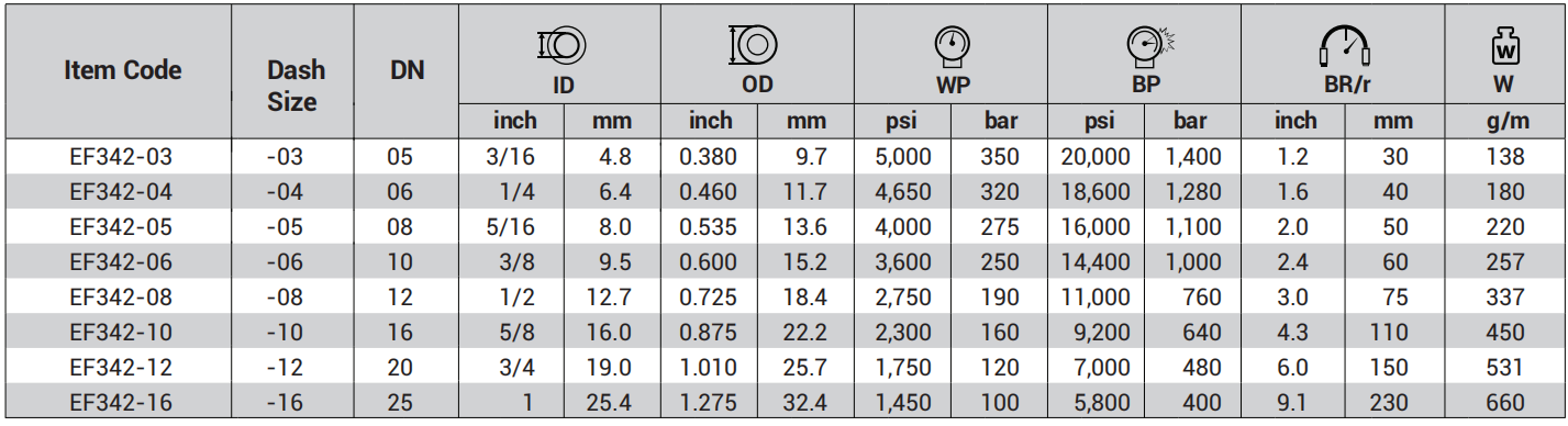 EF342 - 单层喷涂热塑管 350 bar