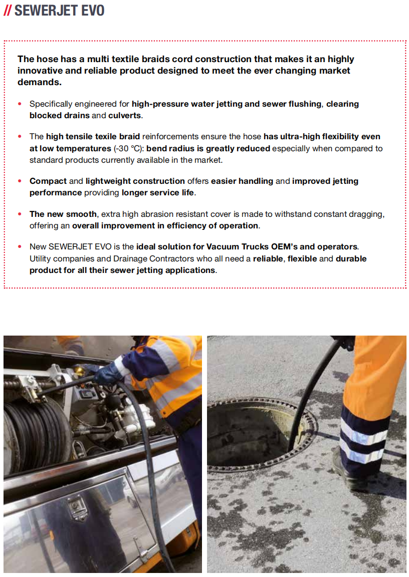 Application: sewer jetting and heavy duty, high pressure water cleaning; extremely flexible