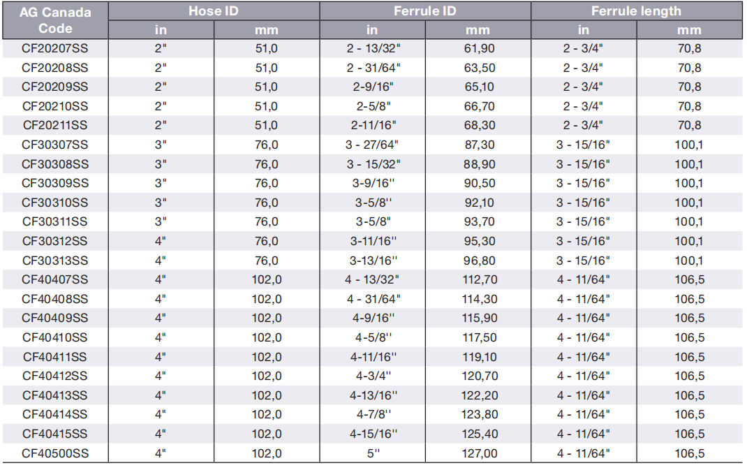 Smooth ferrule - Stainless steel 304