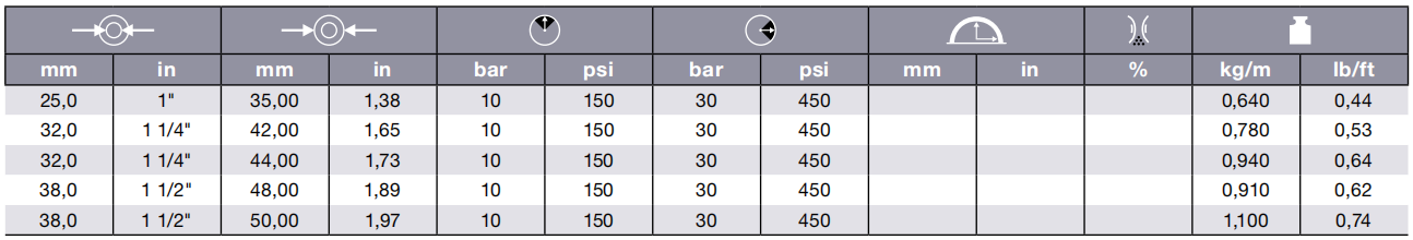 650AB 燃油输送管 10 bar (150 psi)