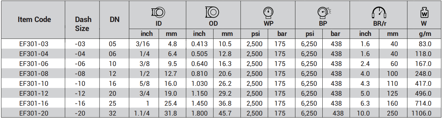 EF301 - 175 bar下水道清洗管 - 可耐微生物降解