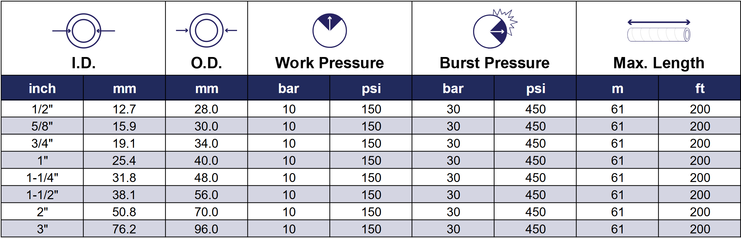 标准长度:最大长度可达61m(200ft)