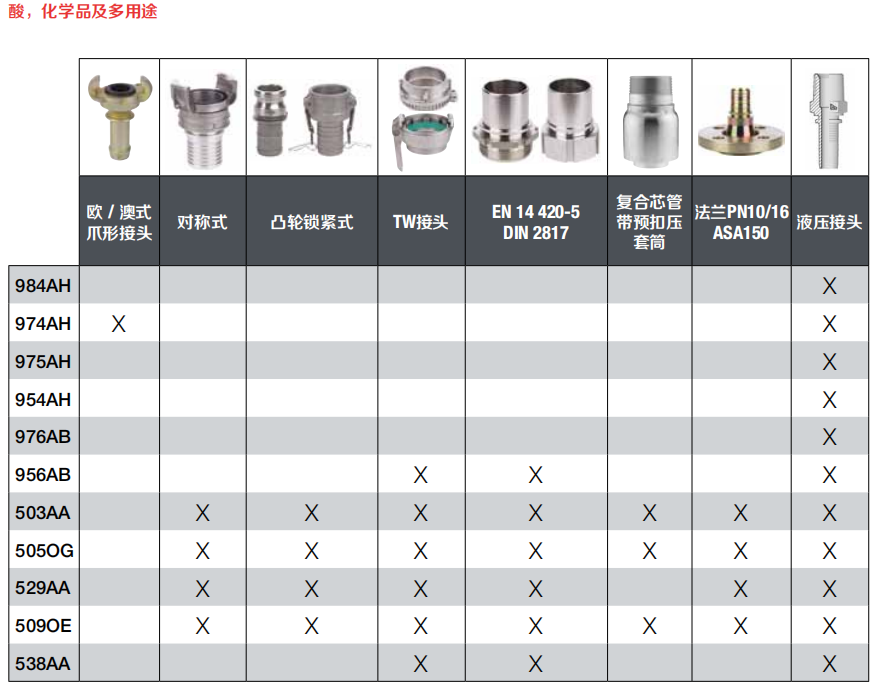 509OE 酸-化学品吸排管 16 bar (240 psi)- UPE FDA - EU 10/2011 A+B+C+D2酸和化学品的吸排,适用于 98% 的现有化学品