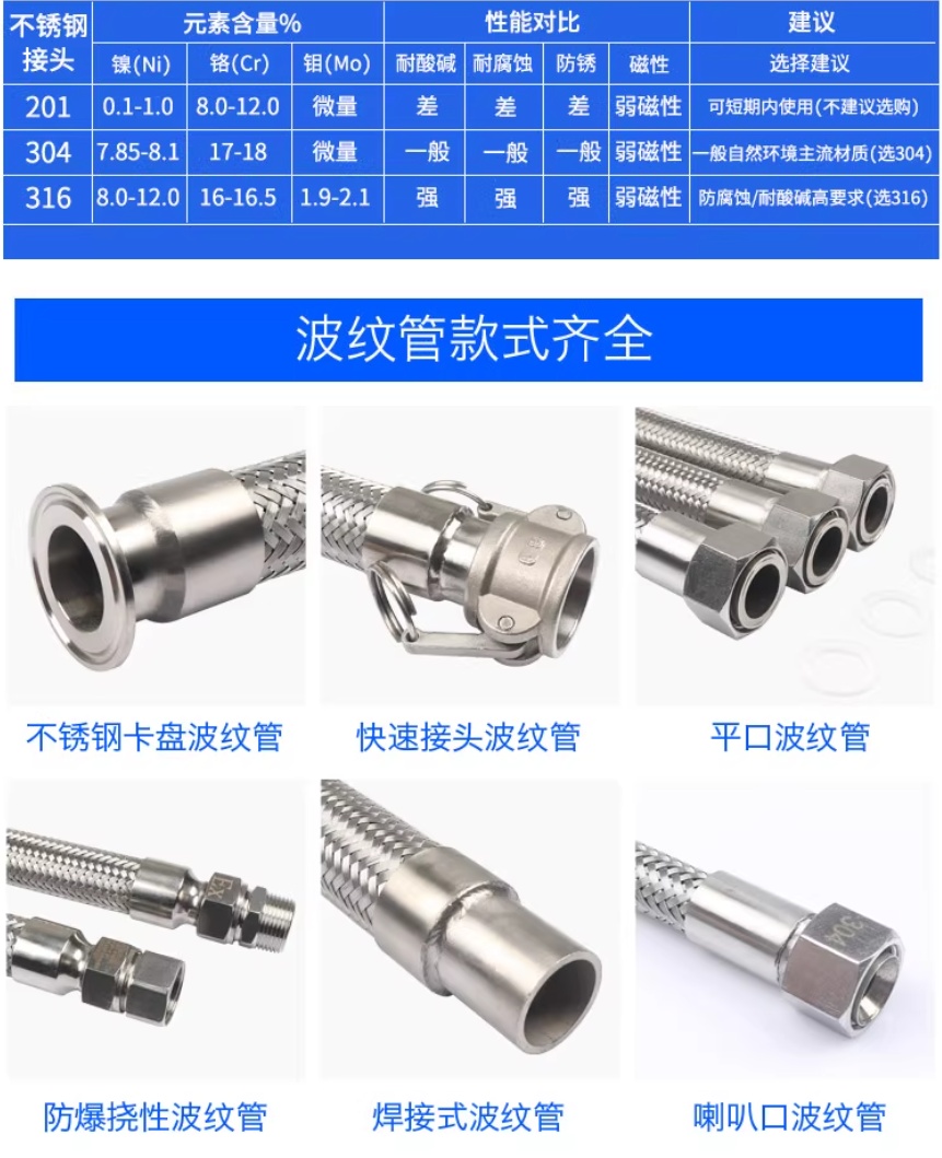 产品材质:304/316L/201 产品特性:施工性好、结构紧密 产品特点:抗高温、抗磨防腐 产品用途:酒厂、 化工生物 、制药、设备机械