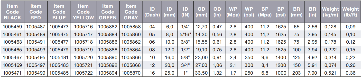Application: low pressure hydraulic lines, fuel oil, antifreeze solutions, air and water. Compatible with push-on fittings.