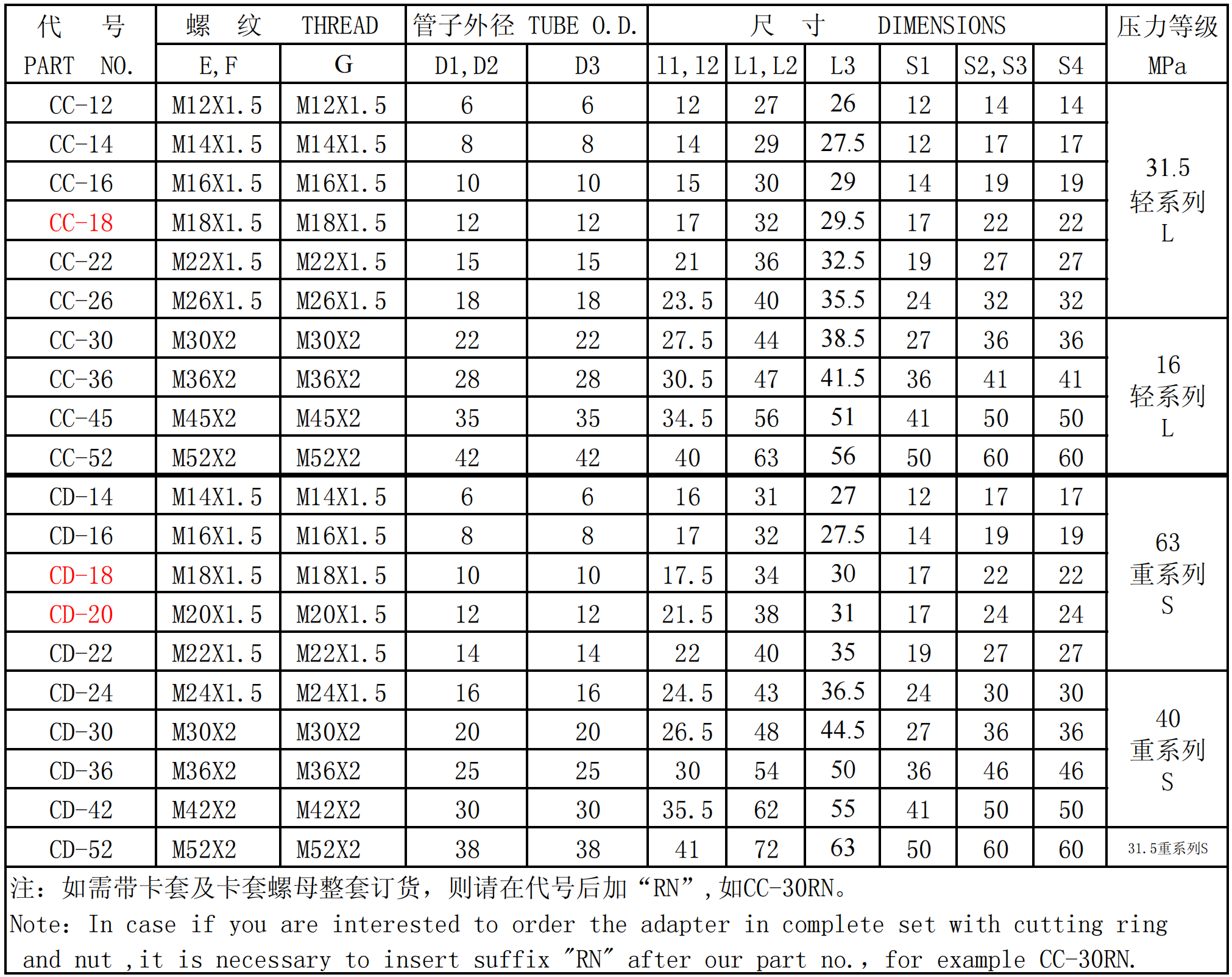 卡套 RL,RS