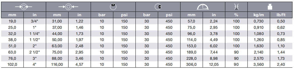 405LL 脂肪类食品吸排管 10 bar (150 psi) FDA - 3-A - D.M. 21/03/73