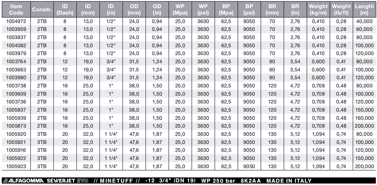 SEWERJET EVO - 下水道清洗管(250 bar)棉线编织