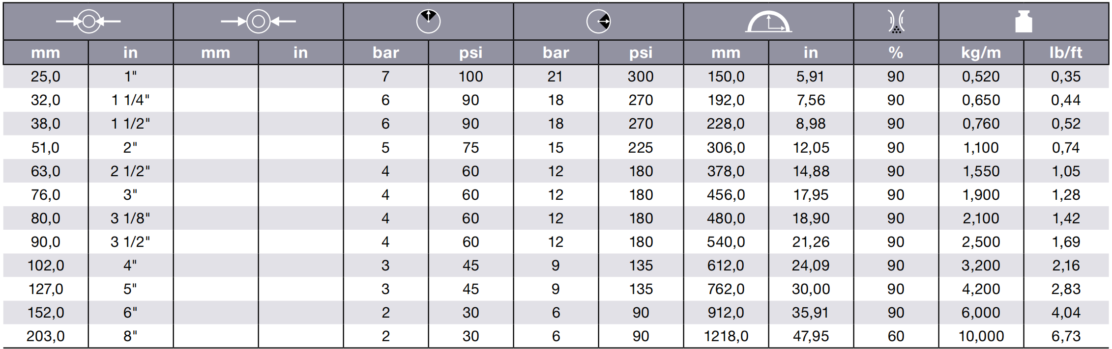 Construction: grey PVC- abrasion and ozone resistant