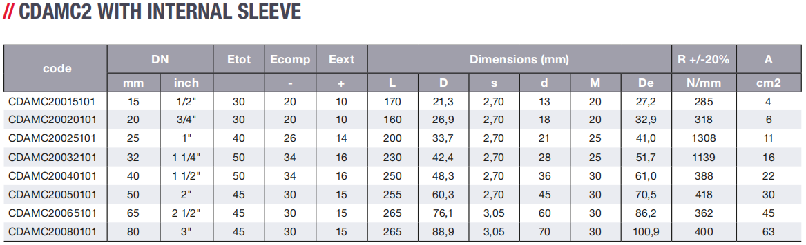 Internal sleeve: AISI 304-1.4301