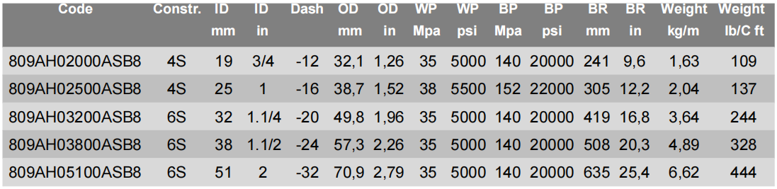 Application:VERY HIGH PRESSURE HYDRAULIC LINES, FUEL OIL, ANTIFREEZE SOLUTIONS, AIR AND WATER.
