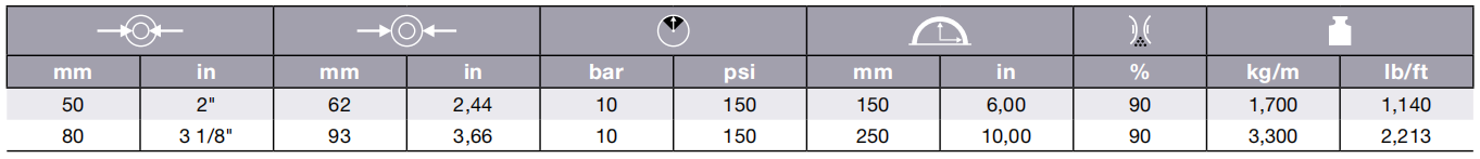电阻: ≤ 2.5 Ohm/mt (≤DN 50mm (2’’))
