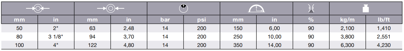 电阻: ≤ 2.5 Ohm/mt (≤DN 50mm (2’’))