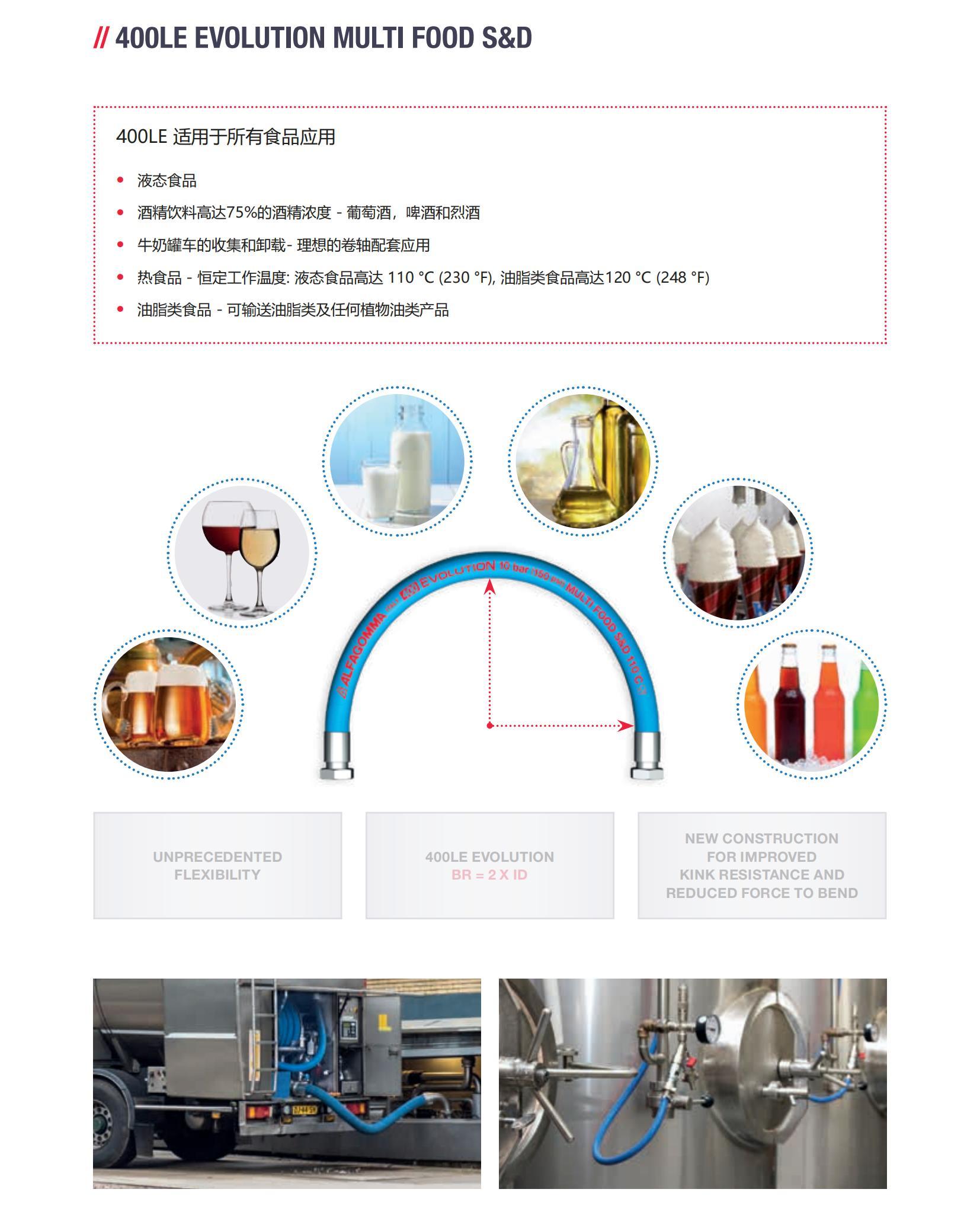 402LH 液态食品吸排管 10 bar(150 psi) FDA液态食品和酒精度不超过 50% 的酒精饮料的输送