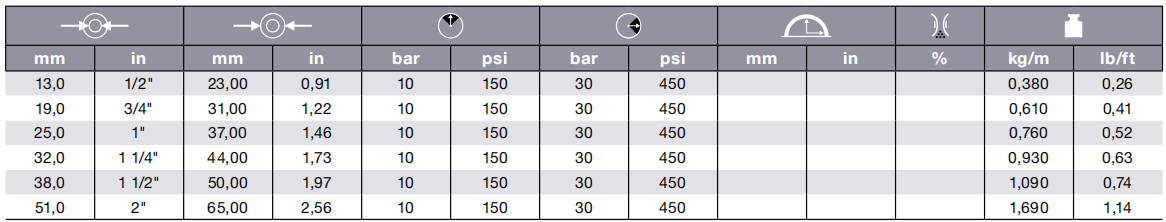 455LE 脂肪类食品输送管 10 bar (150 psi) FDA液态食品、脂肪类食品和酒精度不超过 75%的酒精饮料的输送