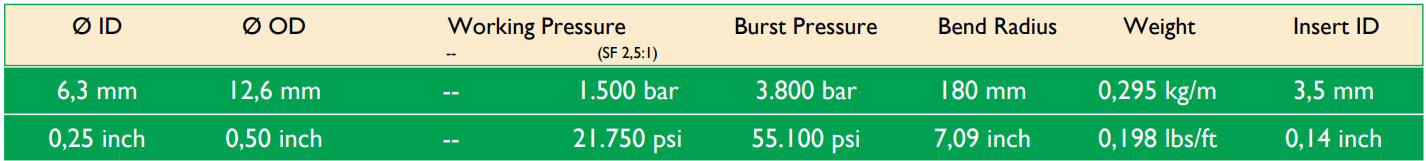技术特点:工作压力1500bar(150Mpa),爆破压力380Mpa 4层高弹性钢丝保证超高压工况的绝对安全
