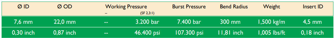 技术特点:工作压力3200bar(320Mpa),爆破压力800Mpa!8层高弹性钢丝保证超高压工况的绝对安全